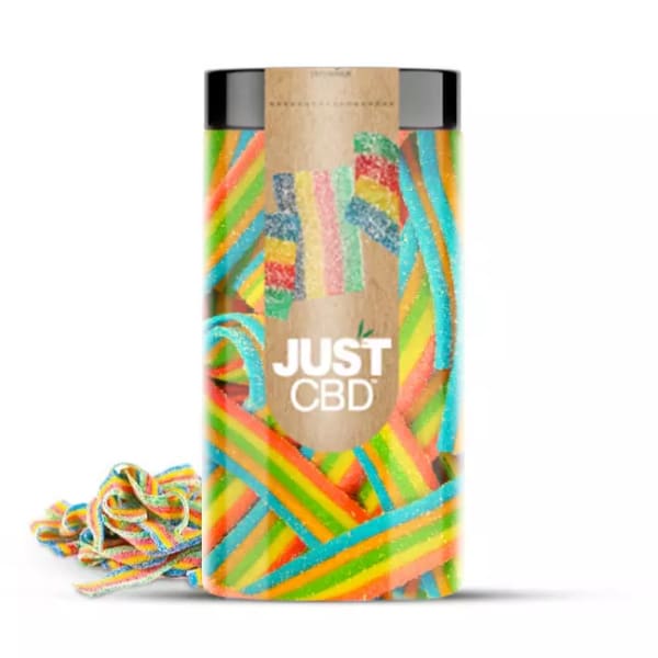 Sugar, Glucose-Fructose Syrup, Wheat Flour, Dextrose, Malic Acid, Palm Oil, Citric Acid, Artificial Flavor, Turmeric Extract (Color), FD&C Red #40, FD&C Blue #1, Antioxidants (Ascorbic Acid, Tocopherols), Hemp Extract CANNABIDIOL (CBD), COCONUT OIL.